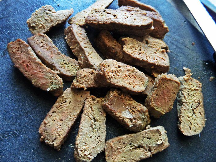 Куски печенки обжариваем с двух сторон с солью, перцем на масле Biolio. Жарим, как обычно, любите.