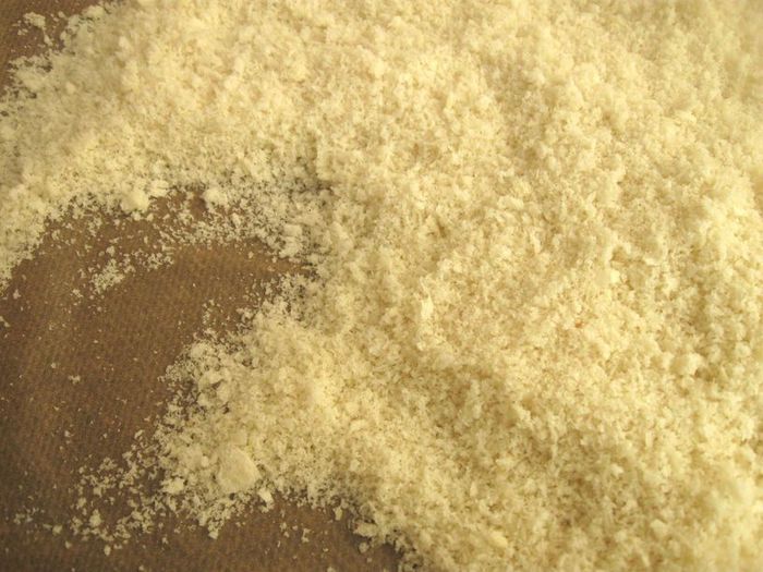 В блендере использовать пульсирующий режим, секунд 10-15 измельчать, встряхнуть стакан блендера, перевернуть, вернуть в исходное положение, еще немного измельчить, если остались большие кусочки хлеба. Нам нужна не очень мелкая, фактурная крошка. Духовку разогреть до 120°С (можно поставить чуть меньше градус). Противень застелить бумагой для выпечки, выложить измельченный хлеб, поместить в духовку, надо периодически перемешивать крошку, можно через небольшое время приоткрыть дверцу духовки, продолжать высушивание. Крошка должна остаться светлой. Она должна получиться сухой, пушистой, легкой.