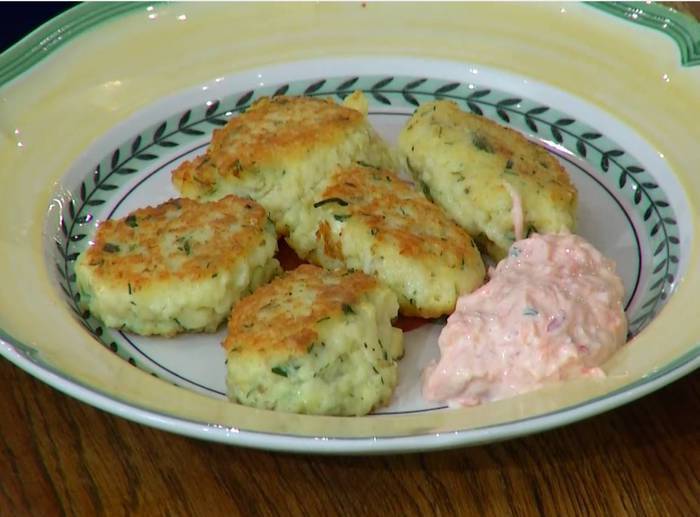 Разогреть в сковороде оливковое масло, с помощью двух ложек сформировать небольшие биточки и обжарить со всех сторон до готовности.