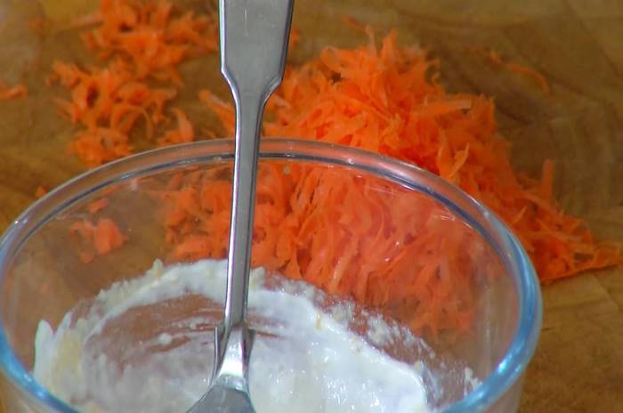 Морковь почистить и натереть на мелкой терке.