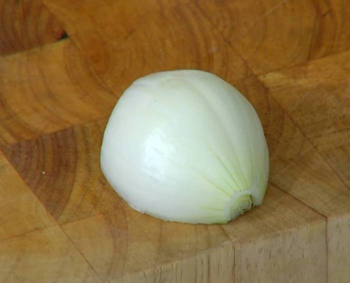 Лук почистить и крупно порезать.