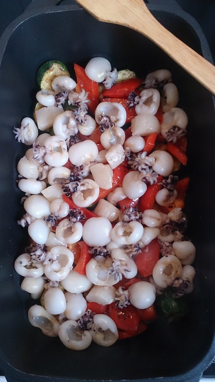 Обжариваем каракатицу буквально 3 — 4 минуты.