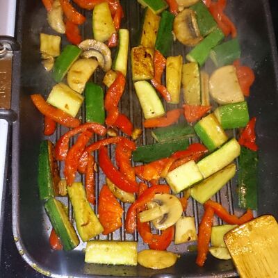 Обжариваем овощи, но не до полной готовности! Так, чтобы были с хрустящими.