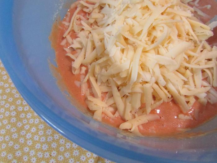 Вмешать сыр. Смесь аккуратно перемешать.