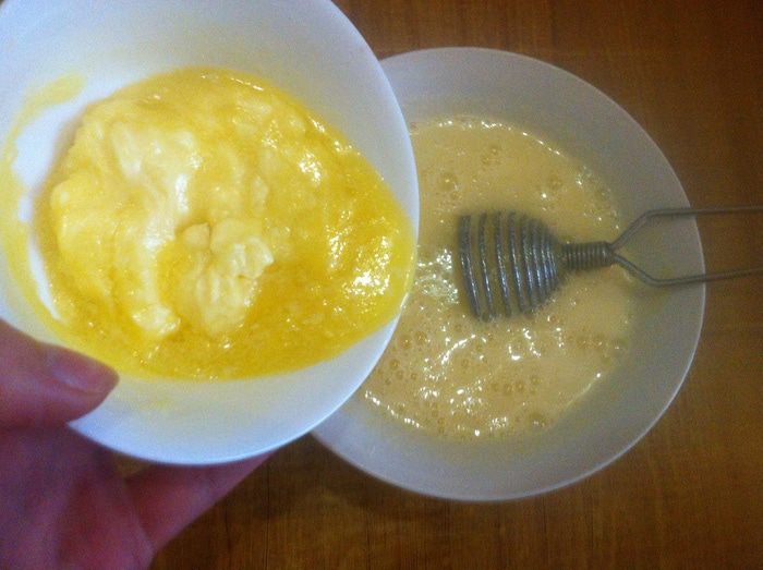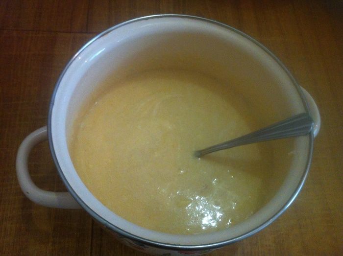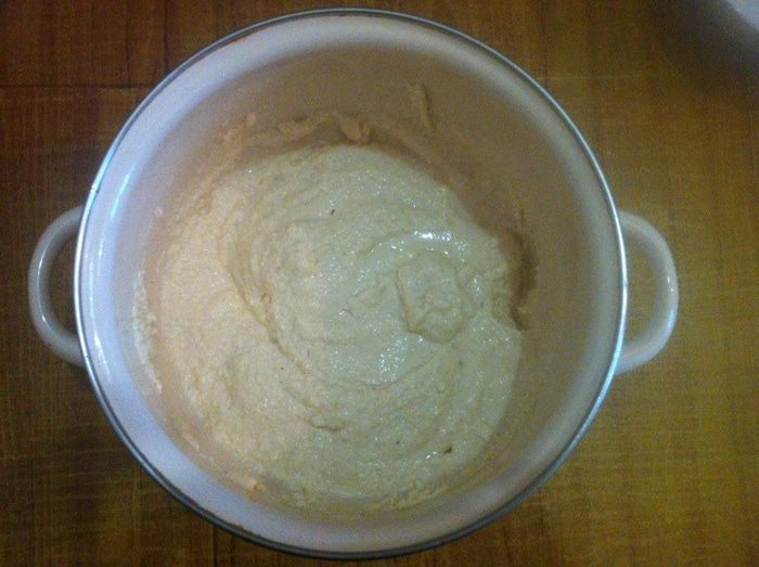 Манную крупу залить ряженкой (можно использовать любой кисломолочный продукт: кефир, йогурт, бифилин, домашнее скисшее молоко или снежок, но он сладкий, и тогда количество сахара нужно будет уменьшить), перемешать и дать настояться от 40 минут до 1 часа, чтобы манка как следует набухла.
