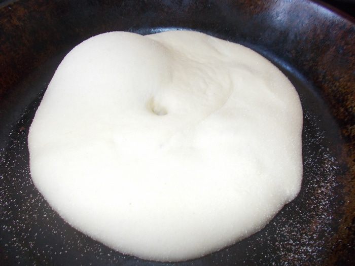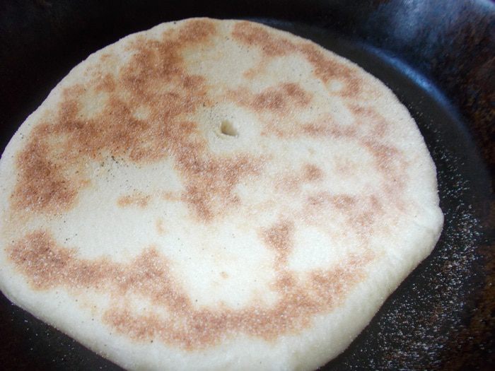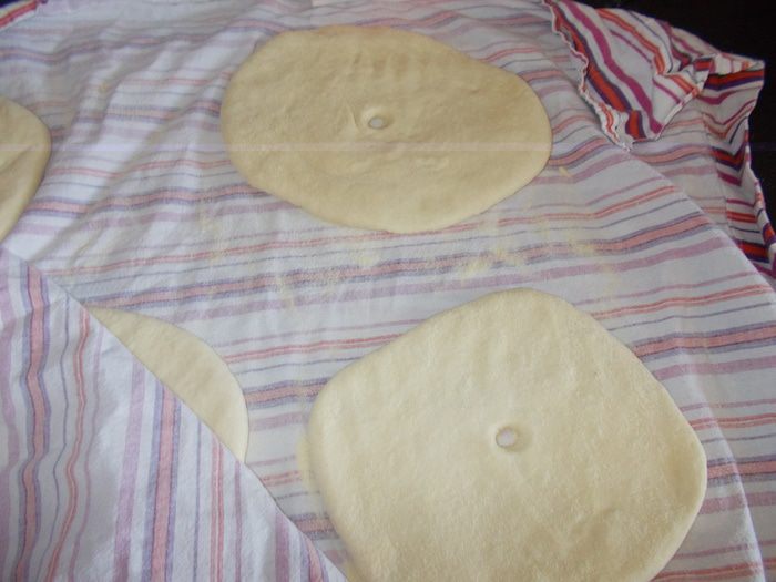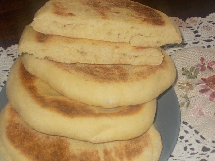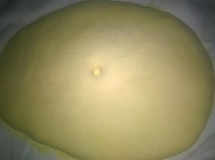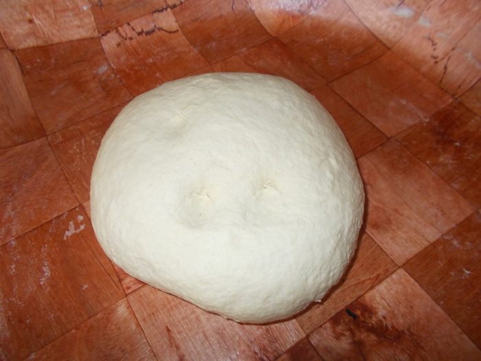 Вода должна быть теплой, как для дрожжей, так и для теста. Развести дрожжи в небольшом количестве воды со щепоткой сахара до появления пены. В глубокую посуду налить масло, всыпать муку, соль, семолину, влить дрожжи и постепенно воду, замесить тесто. Вымешивать тесто минимум 15 мин. Тесто должно быть мягкое и немного липнуть к рукам. Накрыть и оставить в теплом месте на 1,30 — 2 часа.