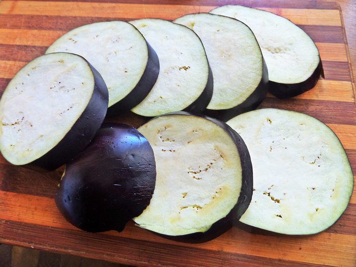Баклажан нарезать на кружки.