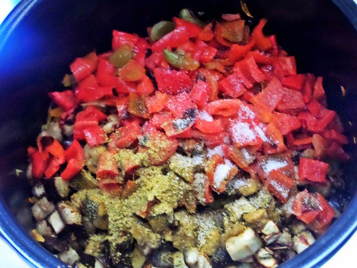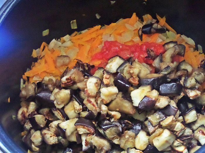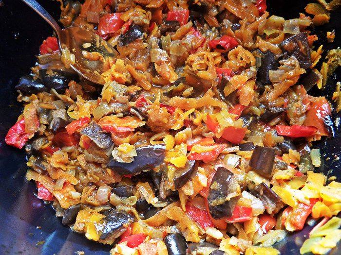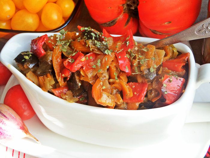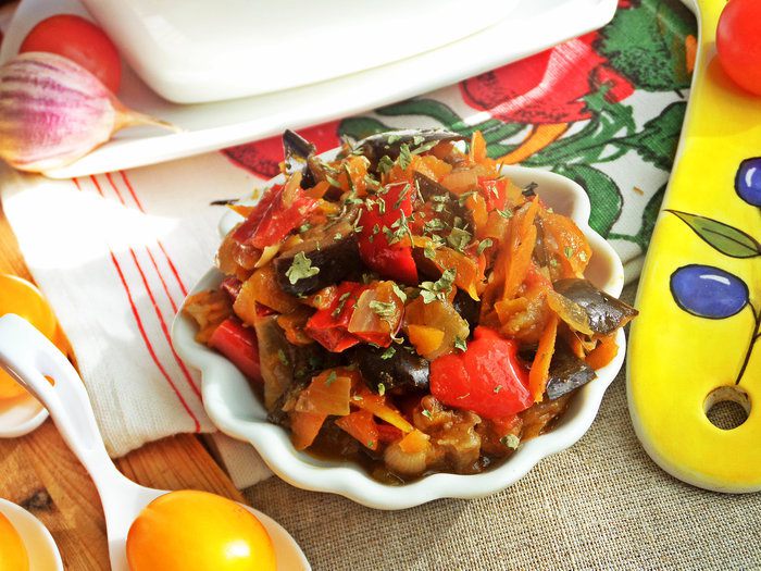 Овощное рагу на основе запеченных баклажанов и перцев