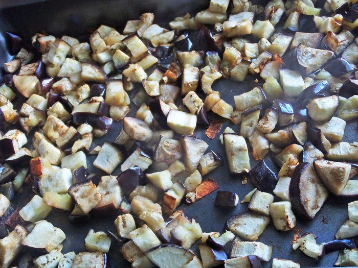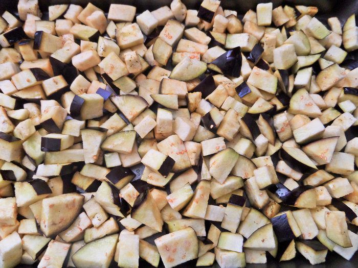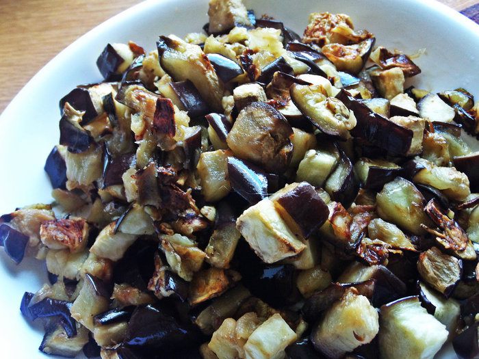 Высыпаем запеченные баклажаны.
