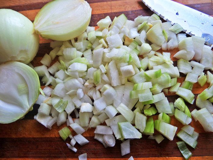 Лук измельчить.