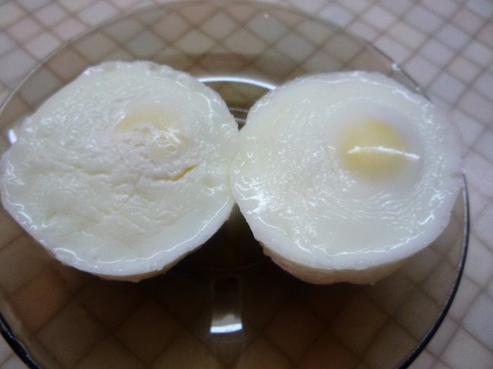 Для яиц пашот в широкой большой кастрюле вскипятите воду с оставшимся уксусом. Разбейте аккуратно яйца и влейте их в воду. Доведите до кипения и снимите кастрюлю с огня. Оставьте на 10 минут. Достаем яйца шумовкой и подсушим на кухонном полотенце.