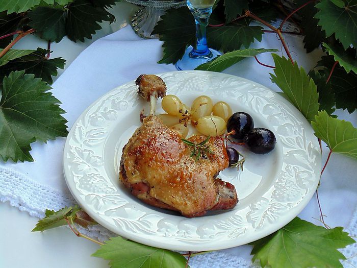 Не секрет, что утка хороша с фруктами. Сегодня предлагаю рецепт ароматного и эффектного осеннего блюда из утки с пряным виноградом.