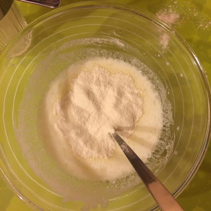 Мацони комнатной температуры смешать с теплой водой, добавить соду и дать постоять пару минут. Затем добавить: растительное масло, соль сахар и перемешать. Начать постепенно добавлять муку.