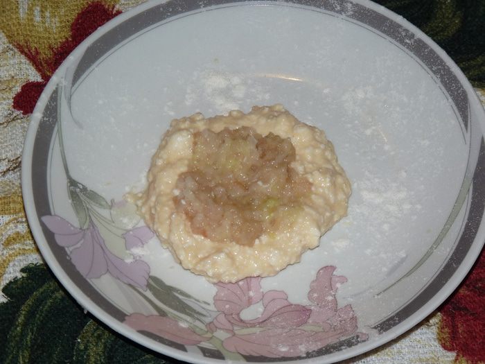 Второй вариант (хлопотный): тертые яблоки используем в качестве начинки.