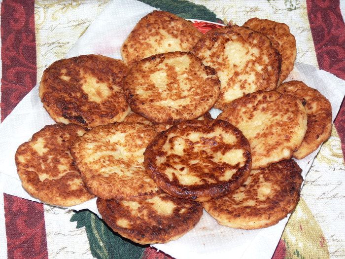 Припорошить ладонь мукой, выложить ложку смеси и сверху присыпать мукой. Аккуратно приплюснуть и жарить с обеих сторон на растительном масле до золотистого цвета. У меня получилось 16 шт., только некоторые исчезли до фотосессии...