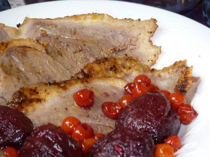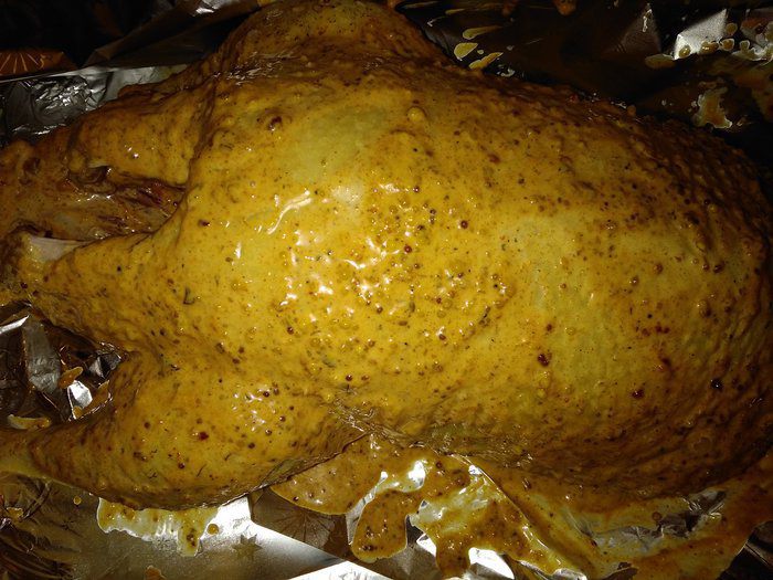 Выложить утку на фольгу, сверху прикрыть фольгой и выпекать в заранее разогретой до 140°С духовке 2 часа. Затем снять фольгу и запекать около 1 часа (в зависимости от духовки) при температуре 180°С, периодически (примерно каждые 10 минут) поливая жиром, выделившимся при запекании. У меня по времени запекания получилось ровно 3 часа. Обычно я заворачиваю в фольгу шею утки, чтобы при запекании не пересохла, но в этот раз забыла.