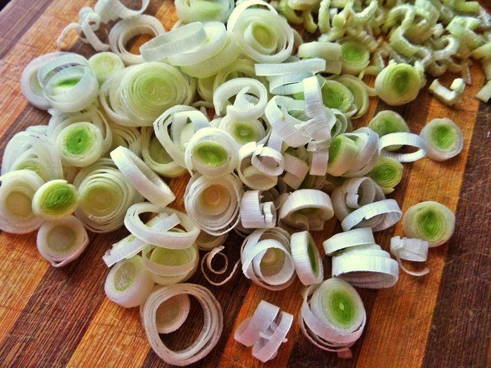 Порей нарезать на колечки.