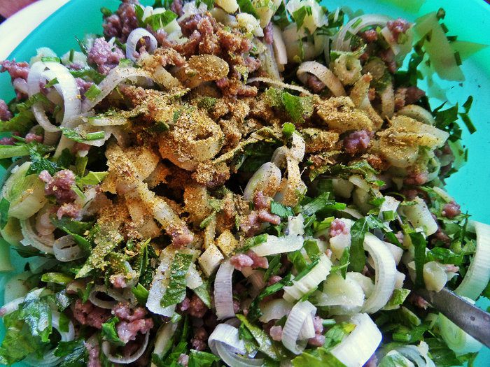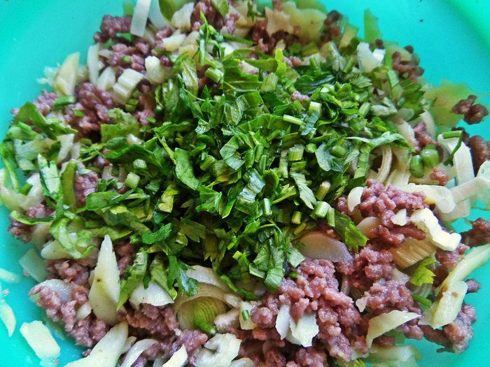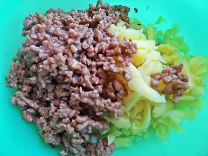 Вместо мясного фарша можно взять курицу.