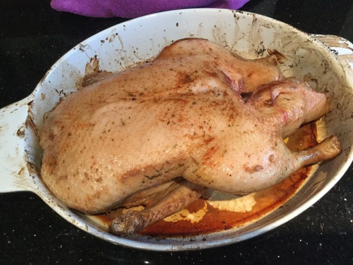 Готовьте утку в предварительно нагретой до 200°С духовке 2 — 2,5 часа. Через 40 минут уменьшите температуру до 180°С.