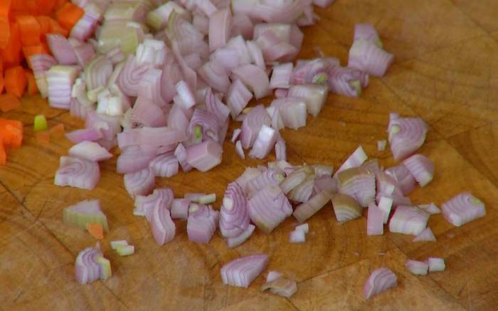 Шалот и чеснок почистить и мелко порубить.