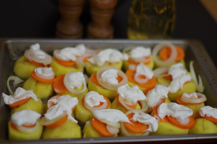 Сверху аккуратно выложить сметану.