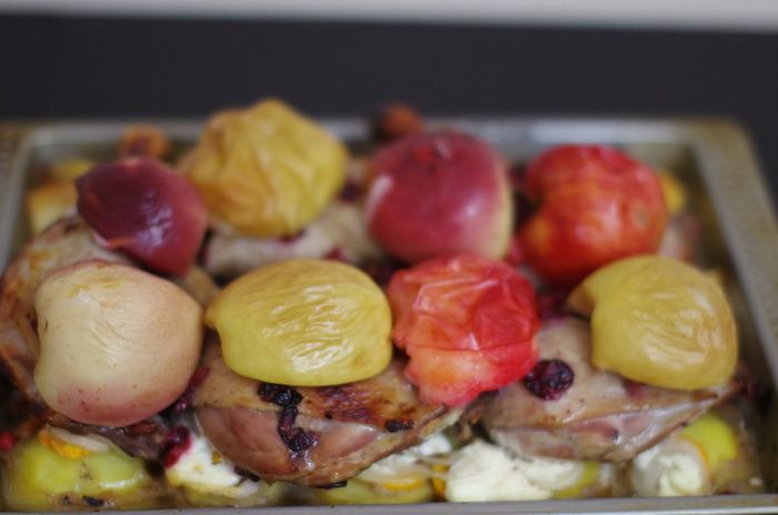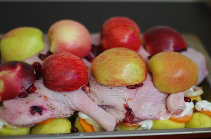 На утку выкладываем яблоки.