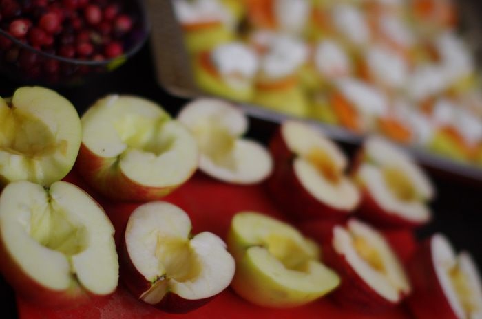 Подготовить яблоки: помыть, разрезать на две половинки, вынуть сердцевину.