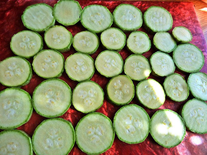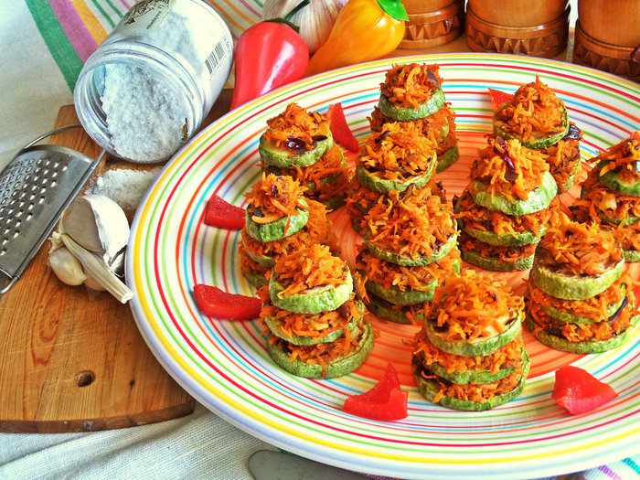Кабачки нужны молодые, без семечек обязательно. От диаметра будет зависеть ширина пирамидок.