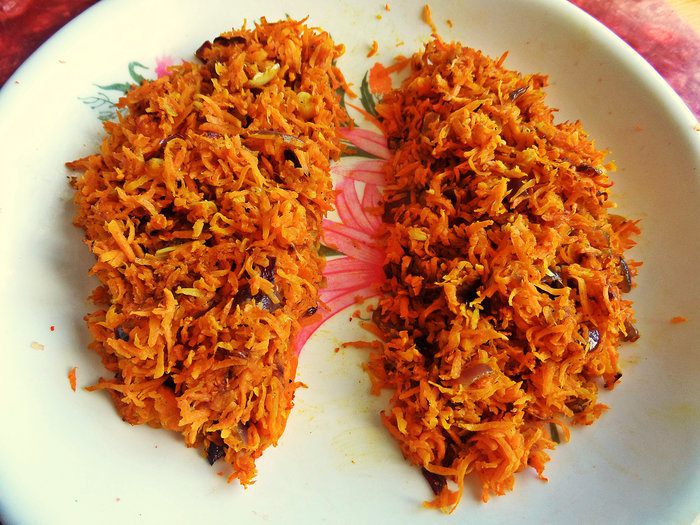 Завершаем щепоткой моркови. Можно положить маслину, зелень, даже кусочек сыра, что нравится.