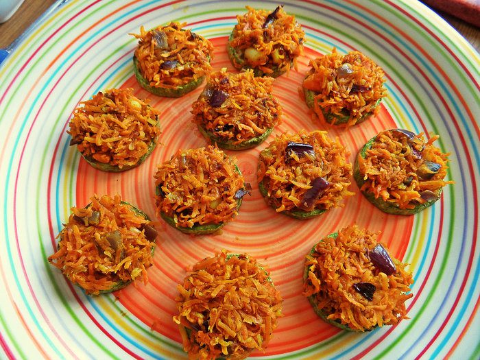 Переносим начинку на тарелку и делим на 2 части. Можно и 3, если кабачков хватает.