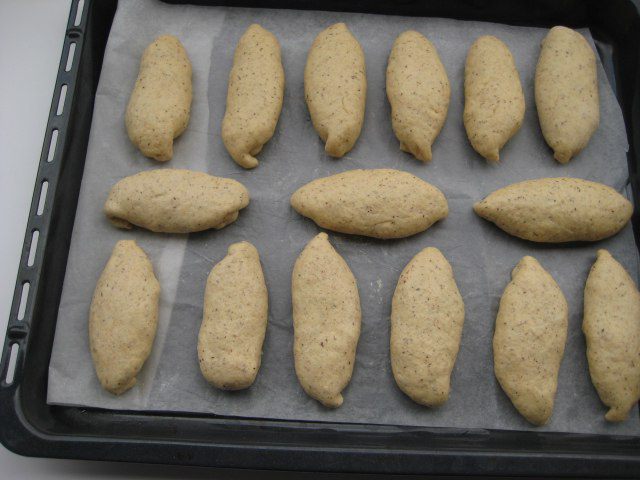 Противень застелить бумагой для выпечки, положить пирожки швом вниз, накрыть полотенцем, оставить на 20 минут.