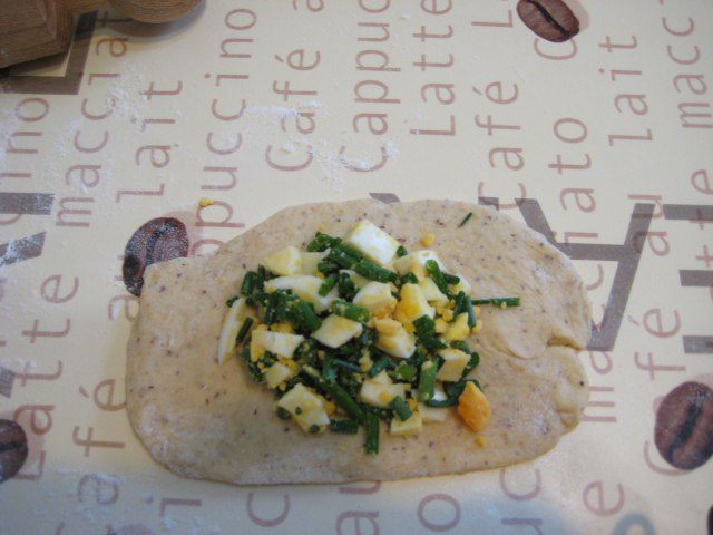 Смешать желток с 1 ст. л. молока, смазать пирожки яичной смесью.