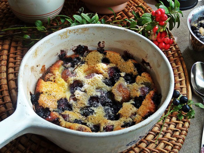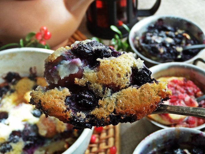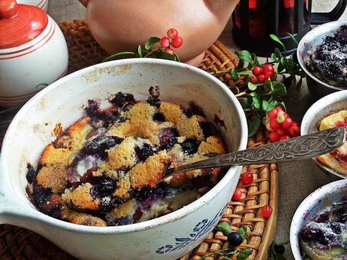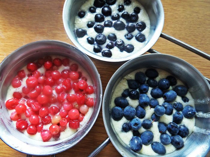 Одну порцию будем запекать с голубикой.
