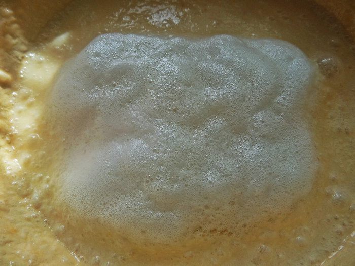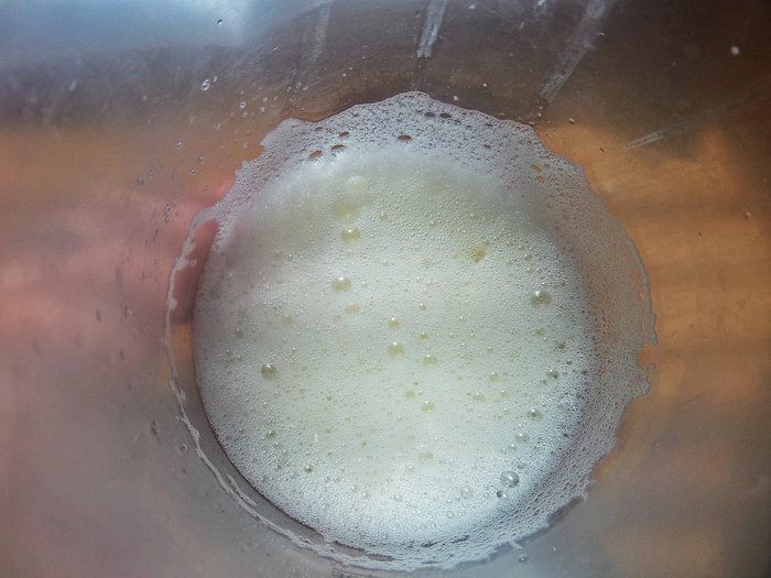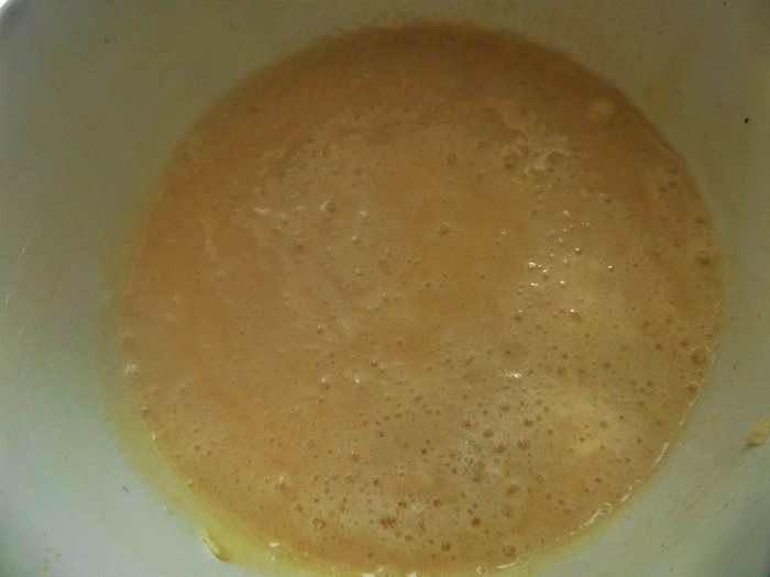 Отделить от двух яиц белки от желтков, белки взбить в пену.