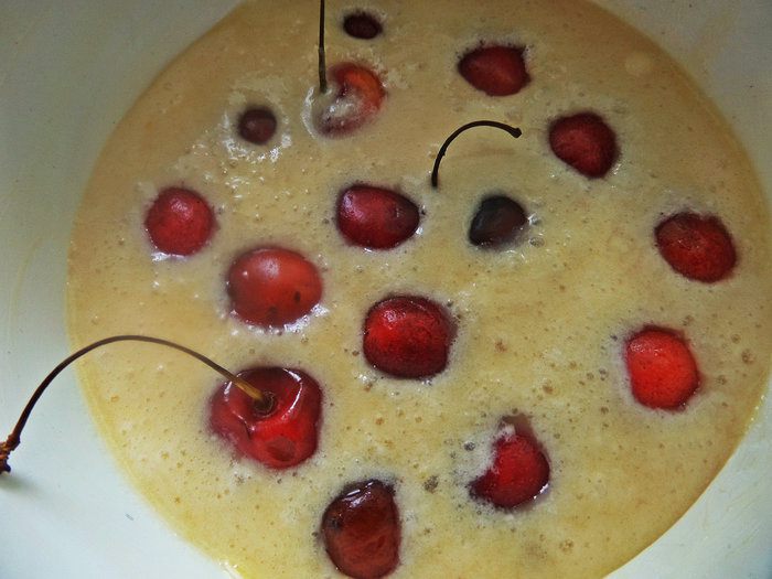 К черешне я еще кинула голубику (много ее в этом году было), так наряднее вышло.