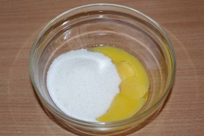 Отделить белки от желтков, желтки слегка взбить с сахаром.