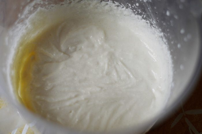 Хорошо взбить миксером, чтобы получилась абсолютно однородная нежная масса.