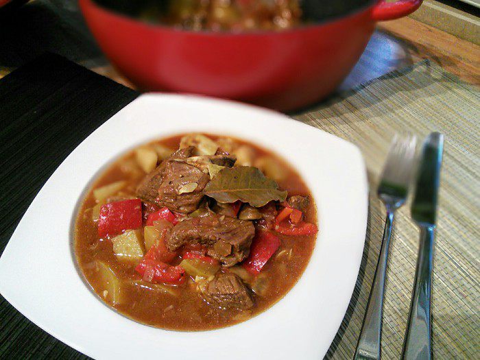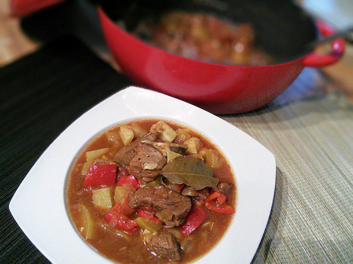 Говядина, тушенная с овощами в остром соусе (Chili-Rindfleisch-Eintopf)