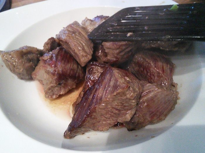 Мясо обмыть, обсушить и удалить все жилы, пленки и лишний жир. Если этого не сделать, блюдо будет несъедобным.