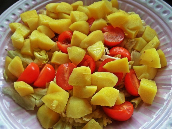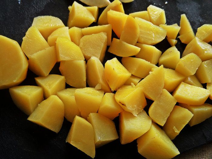 Картофель отварить заранее. Желательно, более мелкие картофелины.