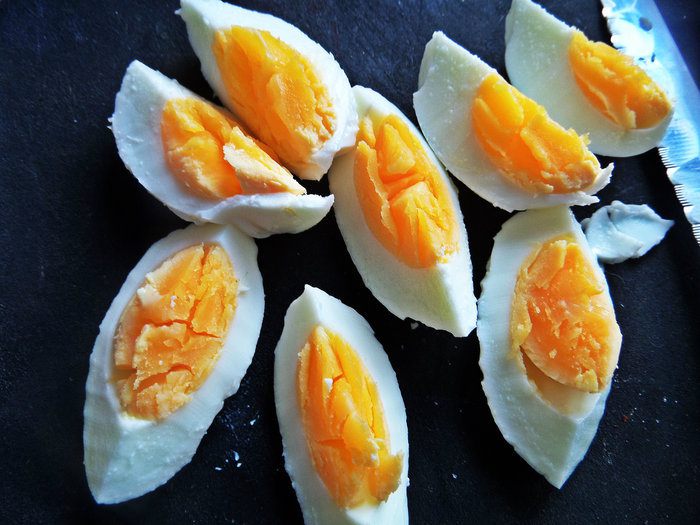 Помидоры черри разрезать пополам. У меня 7 красных и 3 желтых, но последние особо для вкуса не играют роль.