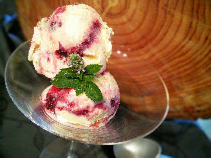 Я собираю урожай и перетираю ягоду с сахаром, заготовку храню в холодильнике. Такой способ обработки позволяет сохранить максимум пользы и вкуса. Ягода отлично желируется, т. к. содержит природный пектин. Именно йошту я добавила в мороженое, рецептом которого хочу сегодня поделиться.