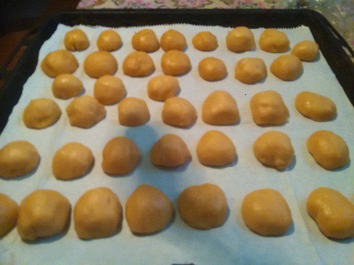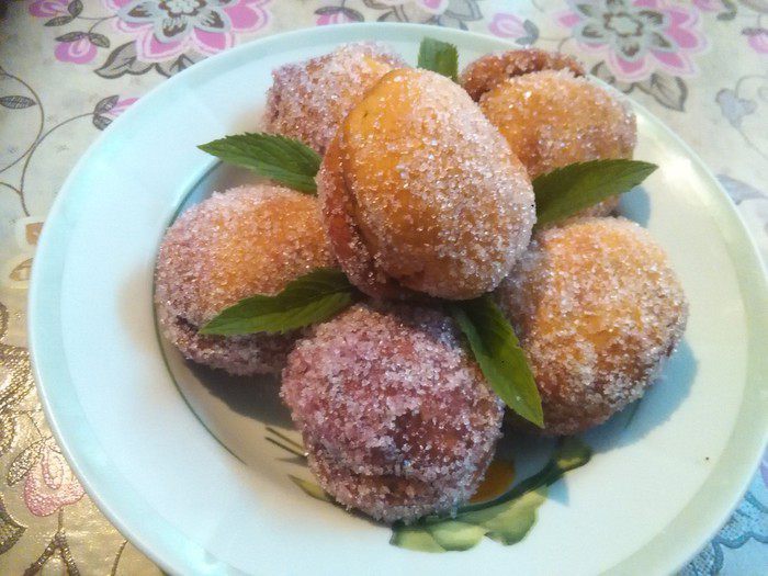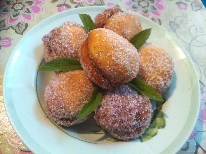 В каждую половинку накладываем начинку и соединяем две половинки. Так делаем со всеми половинками. Я натерла свеклу и морковь, выжала из них сок. Одну половинку печенья обмакиваем в сок моркови, вторую — в сок свеклы и со всех сторон посыпаем сахаром. Печенье готово. Вкусное лакомство с детства.