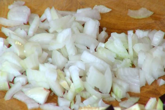 Лук почистить и мелко порубить.