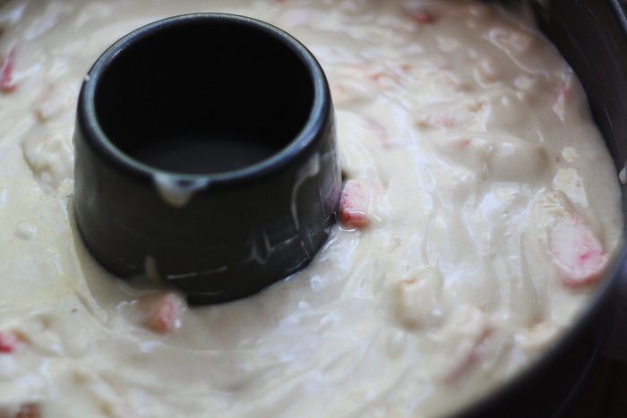 Поставить форму с тестом в разогретую до 180°С духовку и выпекать кекс 30 — 40 минут (возможно, больше или меньше, зависит от вашей духовки). Готовность проверить сухой деревянной палочкой или зубочисткой, если она сухая, то кекс готов. Готовый кекс остудить в форме, затем перевернуть на блюдо и украсить по своему желанию. Я полила сверху марципановой глазурью Dr. Oetker.