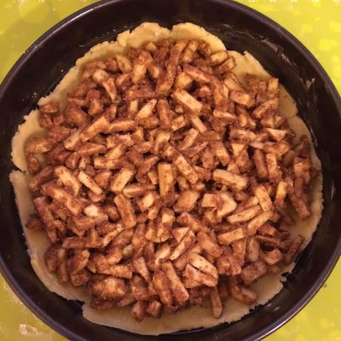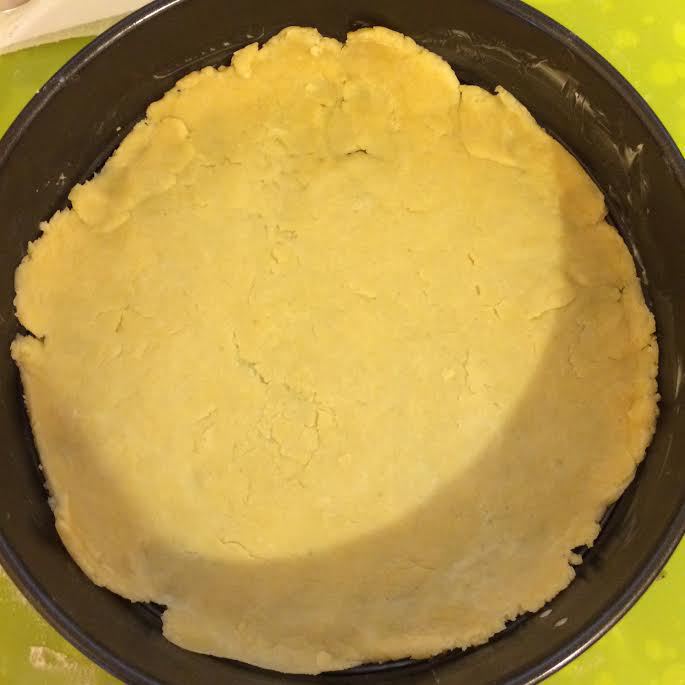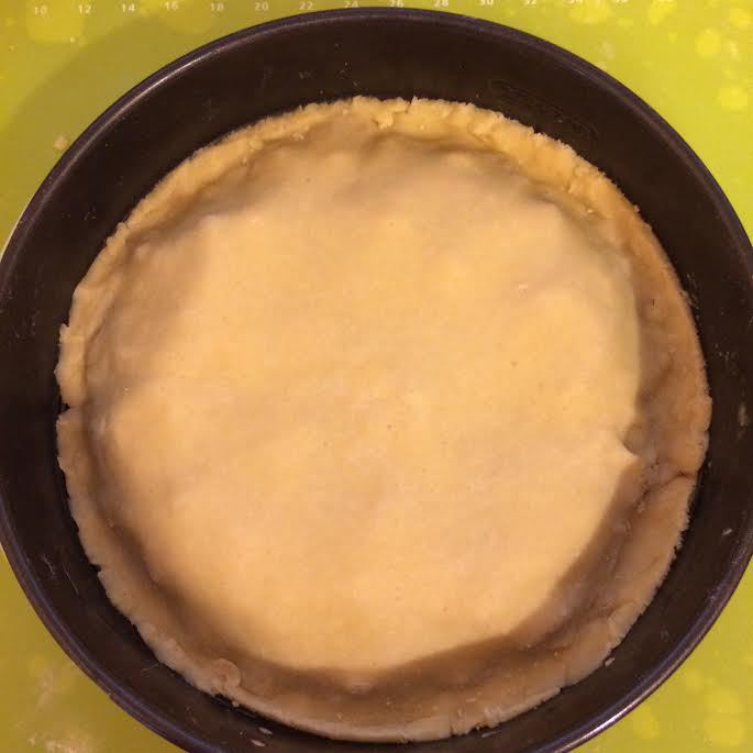 Духовку разогреть до 180°С. Форму (диаметр 26 см) слегка смазать маслом. В миске смешать муку, сахар, соль, разрыхлитель и холодное масло. Перетереть все в крошку. Затем добавить молоко и желток, быстро собрать тесто в шар, долго не месить. Завернуть в пленку и отправить в холодильник на 10 минут.