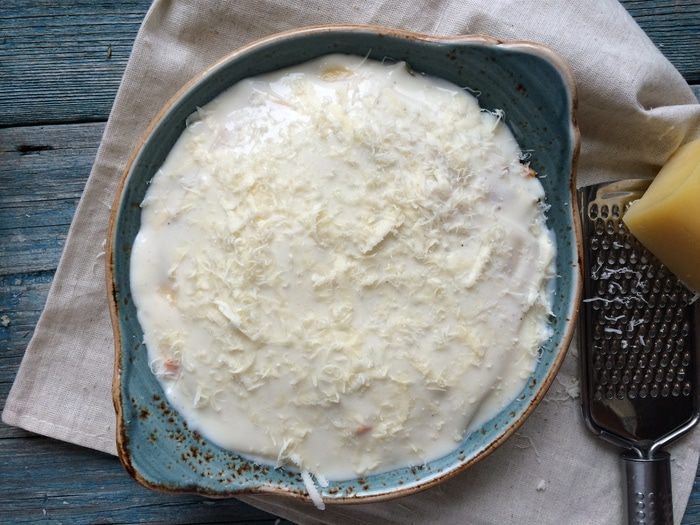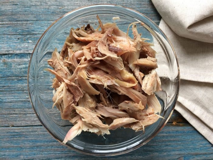 Большой сотейник поставьте на средний огонь, влейте немного утиного жира и выложите лук, морковь, затем выжмите через пресс оставшийся чеснок. Готовьте 15 минут до тех пор, пока овощи не начнут подрумяниваться, регулярно перемешивая. Влейте вино, прибавьте огонь и дайте жидкости выпариться. Затем добавьте утиное мясо, нарезанные томаты, 200 г воды и лавровый лист. Хорошо перемешайте и готовьте на слабом огне еще 40 минут.