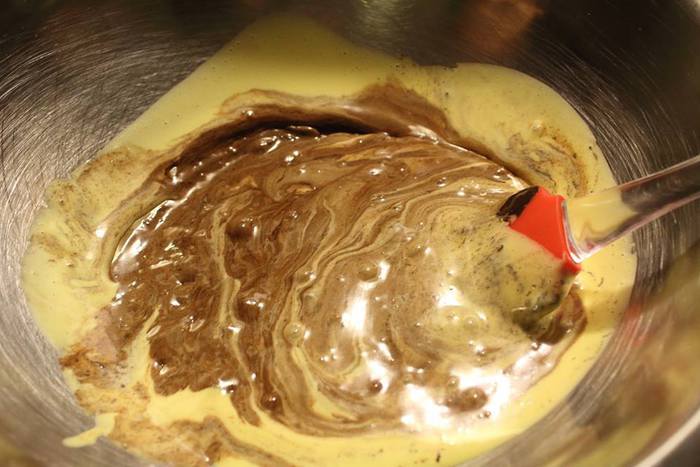 Растопить шоколад (я в микроволновке это делаю), аккуратно лопаткой вмешать в желтки.