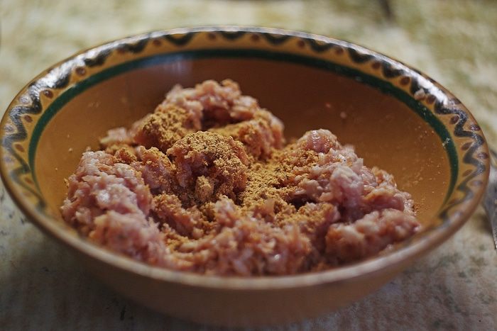 Для начала берем фарш, добавляем приправу, хорошо перемешиваем. Я брала «Galina Blanca для сочных тефтелек» и больше ничего не добавляла — ни соль, ни перец. Вы можете использовать любую приправу на ваш вкус.