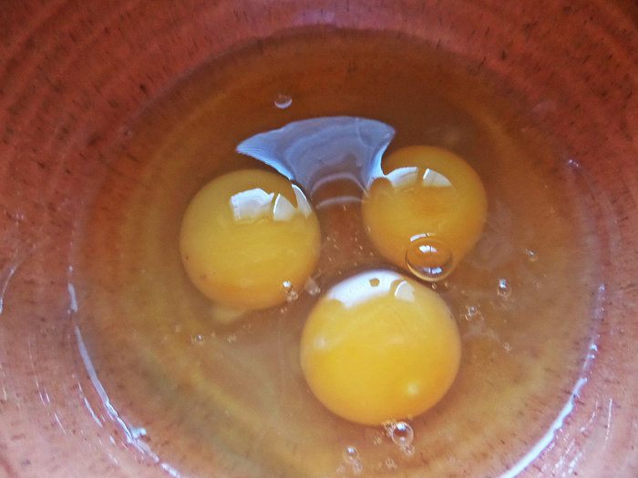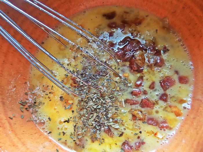Взбить в миске яйца.
